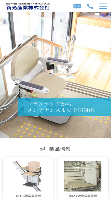 新光産業株式会社では階段昇降機・段差解消機など、身体の不自由な方や高齢者の方がより快適な生活へと導くためにプランニングからメンテナンスまで全国対応!階段昇降機以外にも様々な製品をご用意しております。