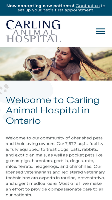 Complete veterinary care for cats, dogs, rabbits, exotics, and pocket pets in Ottawa, Ontario. Expert services, surgery, vaccines, and prevention for your pets.
