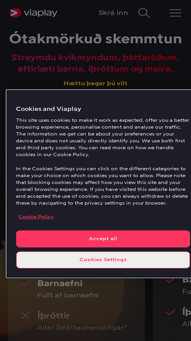 Leigðu kvikmyndir á netinu og horfðu á íþróttir í beinni eins og meistara- og úrvalsdeildina. Viaplay er með allar sjónvarpsþætti og rásir á netinu.