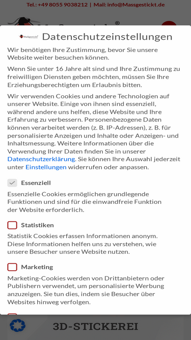 Massgestickt | Stickerei und Textildruck für Firmen, Vereine und Gruppen - Mindestbestellmenge 10 Artikel. Onlineshop mit umfangreichem Sortiment und großer Auswahl inkl. Produkt-Konfigurator für Logos und Schriftzüge. 10 Jahre Erfahrung | TOP-Qualität | Super Service