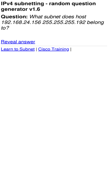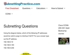 constant subnetting practice is the only way to pass your ccna! this site automatically generates questions on subnetting using a random number generator.