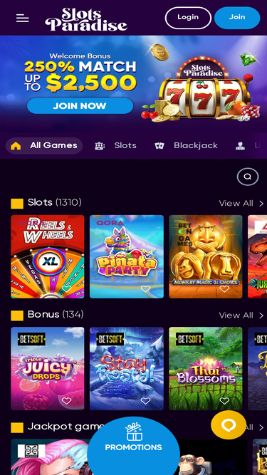 Play your favorite online casino games for real money or free, including blackjack, poker, roulette, and more. Join the fun today at Slots Paradise Casino!