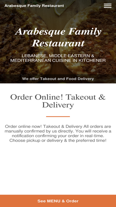 Order Online for Takeout / Delivery. Here at Arabesque Family Restaurant - kitchener you'll experience delicious Lebanese, Middle Eastern, Mediterranean, Kebab, Fish & Chips, Turkish, Greek, Salads cuisine. Try our mouth-watering dishes, carefully prepared with fresh ingredients! At Arabesque Family Restaurant, our recipe for success is simple – Great food & care makes customers return every time.