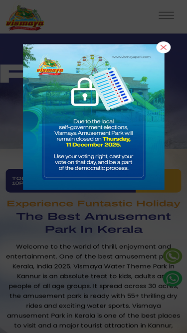 Welcome to Vismaya Amusement Park, the most thrilling and exciting destination in Kerala! At Vismaya, we don’t just offer ride, we create unforgettable memories. It’s a place where fun meets adventure, and joy knows no bounds. Dive into the excitement at the best Water Theme Park in Kerala, with exhilarating water slides, a refreshing wave pool, and splash zones that promise endless fun for all ages. Feel the rush on our thrilling rides or simply relax by the pool under the sun. At Vismaya, safety is our priority. Our state-of-the-art safety measures and trained lifeguards ensure a secure and enjoyable experience for everyone. Whether you’re here to laugh, play, or just unwind, Vismaya Amusement Park in Kerala is your best choice