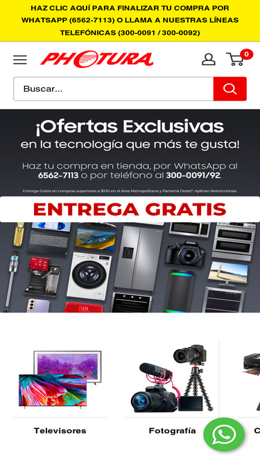 68%Photura Panamá | Empresa Líder en Tecnología y Electrónica | Cámaras, Lentes, Televisores, Laptops, Impresoras, Celulares, Electrodomésticos, Recortadoras & Rasuradoras, Audífonos, Equipos de Sonido, Linea Blanca, Refrigeradoras, Estufas, Microondas, Lavadoras & Secadoras, Aires Acondicionados, Accesorios y más!