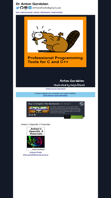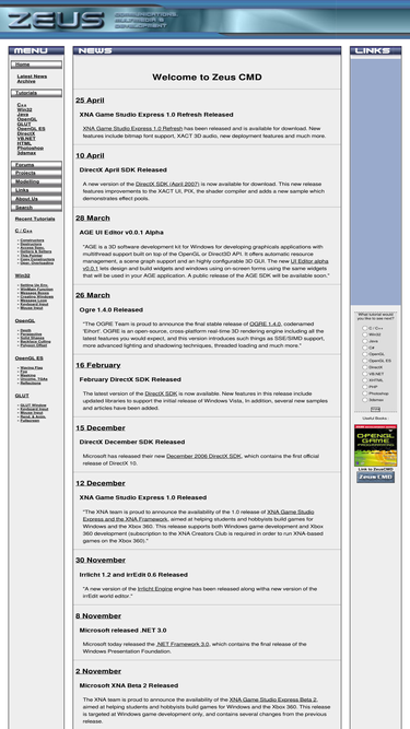 this is the website of grant james (zeus) this website is dedicated to bring you tutorials on c++, opengl, opengl es, directx, java, photoshop, 3dsmax, visual basic.net and html. a focus will also be on game programming and design.
