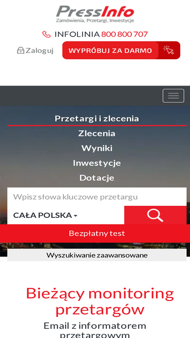 szybko znajdziesz interesujący cię przetarg, a bieżące zamówienia otrzymasz mailem. zarejestruj się na bezpłatny test i przekonaj się do naszego serwisu.