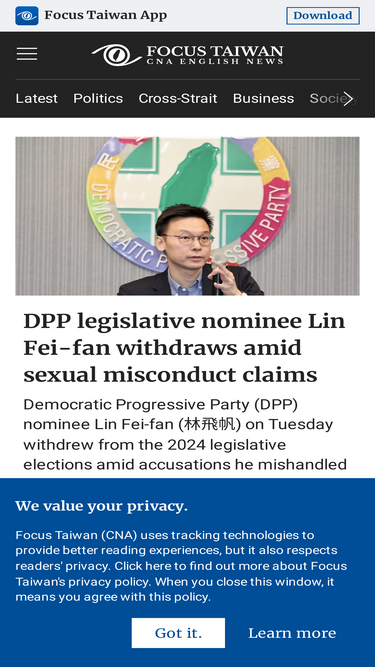 59%中央社旗下英文網站 Focus Taiwan 的 App 重新設計,App Store、Google Play 同步上架。每天 20 則新聞,讀、聽雙重接收,並且輕鬆將台灣分享給全世界