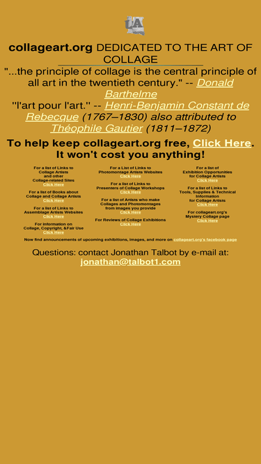 a website dedicated to collage art and collage artists. various resources including bibliography, exhibition opportunities, workshop opportunities, and links to the websites of collage artists.
