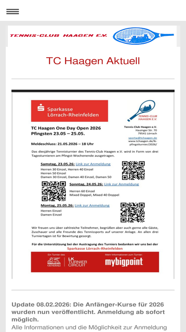 Stellt Verein und Sportbetrieb vor, bietet Termin- und Turnierhinweise sowie Informationen zum Förderverein.