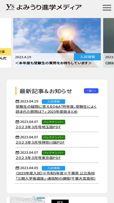 よみうり進学メディアは生徒と保護者の高校進学をお手伝いをする進学情報紙です。日々の学習について、また一都三県の高校の情報をお届けします。