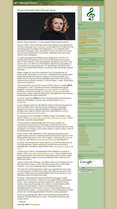 a new york based blog that reviews live classical music, opera, dance, and other performing arts.