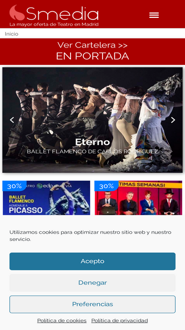 Web oficial de los Teatros de Smedia en Madrid. Venta de entradas de teatro y musicales en Madrid. Estrenos y Cartelera de espectáculos musicales, comedias, danza, y familiares de Grupo Smedia.