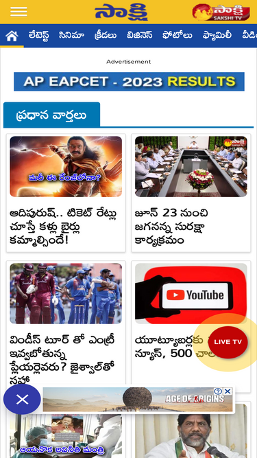 Sakshi (సాక్షి) covers Today’s Latest Online Telugu News, Andhra Pradesh (AP) , Telangana (TS), Political, Crime, Movies, Sports, National And International, Google News, in Telugu, Telugu News LIVE, తెలుగు తాజా వార్తలు, బ్రేకింగ్ న్యూస్ Telugu,Telugu News Headlines, Telugu Breaking News