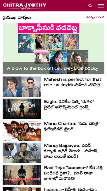 Chitrajyothy Telugu Cinema News: Read the latest telugu cinema news, latest telugu movie news, tollywood gossips, Tollywood Movie Reviews, telugu cinema news, Telugu Cinema Actress Photos, Check out Tollywood, Bollywood, Otherwood cinema news online, telugu Movie news, today latest cinema news, tollywood celebrity news in telugu, Telugu Cinema Videos, Tollywood Film Reviews, new telugu movie releases many more at Chitrajyothy Telugu Cinema News