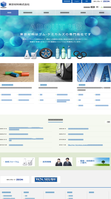 52%ケミカルズの専門商社、東京材料株式会社のオフィシャルサイトです。合成ゴム、プラスチック、熱可塑性エラストマー、化成品等の素材の取り扱いから、オリジナル商品まで、お客様に最適なソリューションを提供いたします。