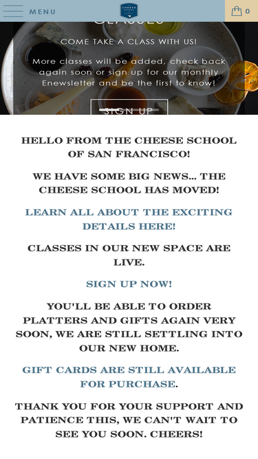 Eating is learning! Attend a class, book private events (team building, bridal showers, private parties). Order artisan cheese and charcuterie platters.