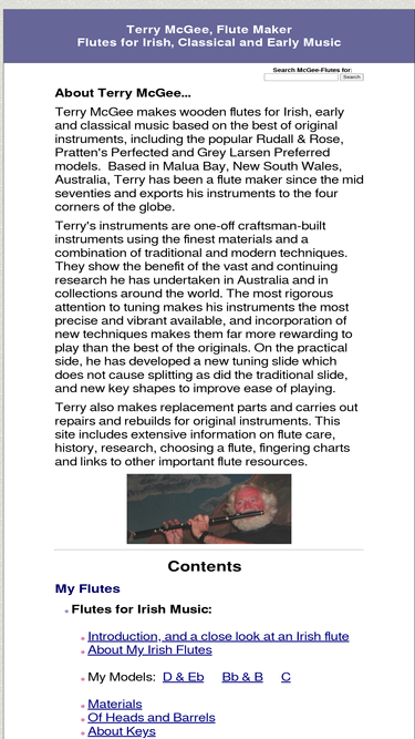 the finest wooden flutes for irish, classical and early music from australian flute maker terry mcgee; flute research, fingering charts and much more