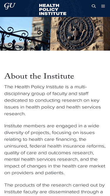 about the institute the health policy institute is a multi-disciplinary group of faculty and staff dedicated to conducting research on key issues in health policy and health services research. institute members are engaged in a wide diversity of projects, focusing on issues relating to health care financing, the uninsured, federal health insurance reforms, quality of […]