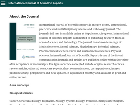 international journal of scientific reports is an open access, international, peer-reviewed multidisciplinary science and technology journal. the journal's full text is available online at http://www.sci-rep.com. international journal of scientific reports is dedicated to publishing research from all areas of science and technology. the journal has a broad coverage of medical sciences, dental sciences, physiotherapy, biological sciences, pharmaceutical sciences, earth and environmental sciences, physical sciences. international journal of scientific reports is one of the fastest communication journals and articles are published online within short time after acceptance of manuscripts. the types of articles accepted include original research articles, review articles, editorial, news, case reports, short communications, correspondence, images, problem solving, perspectives and new updates. it is published monthly and available in print and online version.