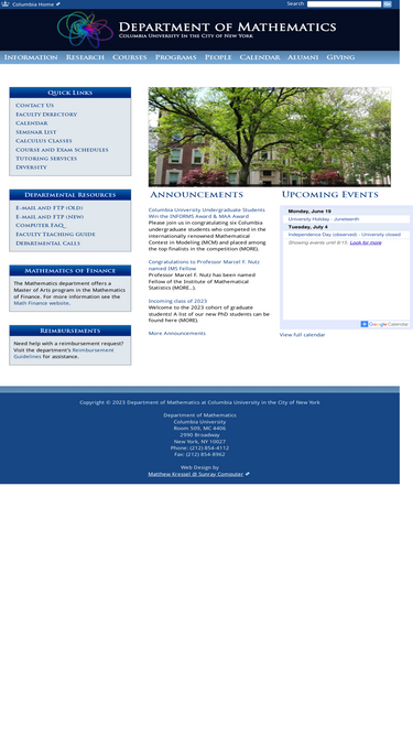 Resources For Current Students Your Academic Advisor is the Program Director: Jaehyuk Choi E: jc6569@columbia.eduT: 212-854-2643426 Mathematics Building (Office Hours) The Career Development Advisor: