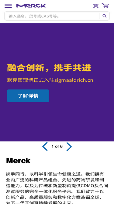 默克在生命科学领域是拥有高科技高品质产品的公司,致力于解决生命科学领域问题,提供sigma-aldrich化学试剂耗材, milli-q实验室纯水, millipore过滤分离, supelco分析化学等产品线,助您应对最具挑战性的生命科学难题。