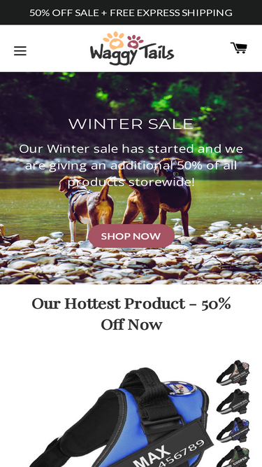 86%Welcome to Waggy Tails, we provide a range of different pet products to improve your pets life and well being! Our most popular product is the Personalised No Pull Dog Harness which is the secret to your hassle-free experience with your best friend, with custom identification on both sides.