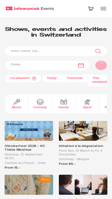 58%Discover all upcoming festivals in Switzerland: music, arts, culture, dance and events. Browse the schedule of the best festivals and book your tickets online on Infomaniak Events.