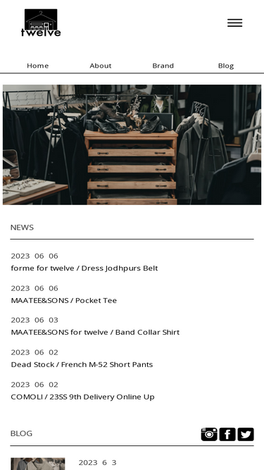 埼玉県川越市のセレクトショップtwelveの通販サイトです。COMOLI, HEUGN, AURALEE, A.PRESSE, MAATEE&SONS, WIRROW, Hender Schemeなど各種ブランド正規取り扱い。