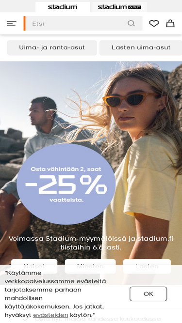 65%Tervetuloa sivustolle stadium.fi. Täällä voit helposti ostaa vaatteet, kengät ja urheiluvarusteet verkossa. Kaikkea sinulle, joka etsit urheilua ja urheilumuotia.