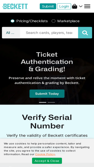 Beckett Collectibles is a one-stop shop for all card grading, authentication, buying, selling, storing and pricing needs.