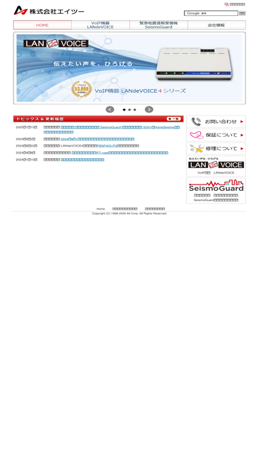 81%株式会社エイツーは、voip機器 landevoice、地震計内蔵 緊急地震速報受信機 homeseismo(ホームサイスモ)等の製品を中心に、ハードウェア開発・ソフトウェア開発・販売・サービスを一貫して自社で行っています。