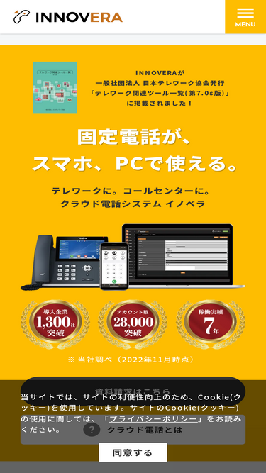 85%プロディライトが提供するクラウドPBX「INNOVERA」は、スマホやPCから固定電話番号で電話をかけることができる導入実績が豊富なクラウド電話システムです。