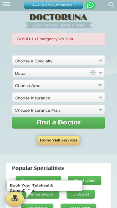 100%doctoruna is a hassle free service to find doctors by location, speciality, insurance or name, and book your appointment easily online with no charge or visa required. doctoruna - find doctors & make appointment online - free! - uae