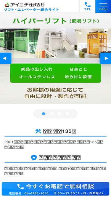 お客様より弊社にいただく、よくあるご質問に対する回答集です。リフトや小荷物専用昇降機やいす式階段昇降機などの様々なご質問に回答させていただいております。不明点等ございましたらお気軽に無料相談へお問い合わせください。