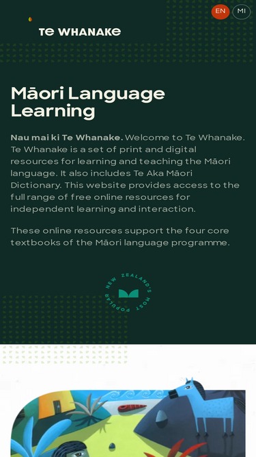 Te Whanake Māori language learning online series: resources, Māori dictionary, podcasts, animated movies, forums and other online resources and activities.