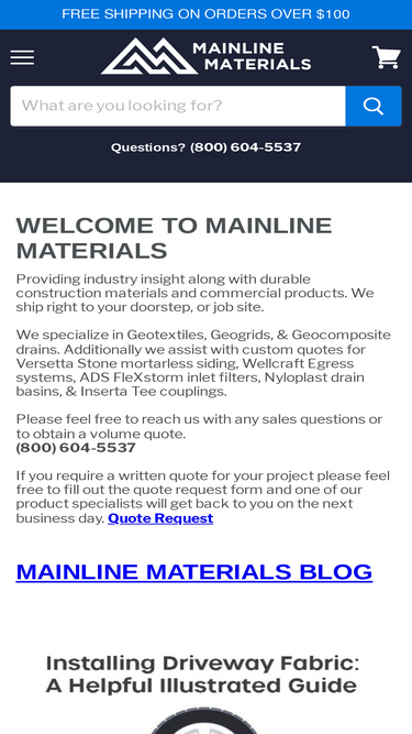 Nationwide distributor of durable industrial materials. Specializing in Geotextiles, Geogrids, Composite Sheet Drain, Versetta Stone Veneer Siding, ADA Truncated Domes, & ADS Drainage components.