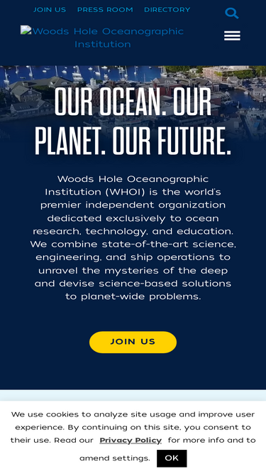 Woods Hole Oceanographic Institution (WHOI) is the world's premier independent organization dedicated exclusively to ocean research, technology, and education. We combine state-of-the-art science, engineering, and ship operations to unravel the mysteries of the deep and devise science-based solutions to planet-wide problems.