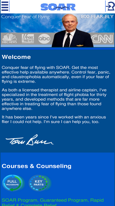 conquer fear of flying. control fear and panic when flying with soar, the professional course by licensed therapist and airline captain tom bunn.