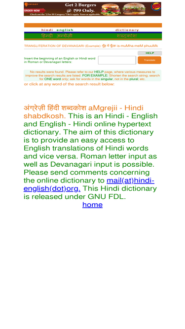 100%hindi-dictionary: this is an online hypertext hindi-english and english-hindi dictionary. hindi words are displayed in devanagari as well as in roman transliteration.