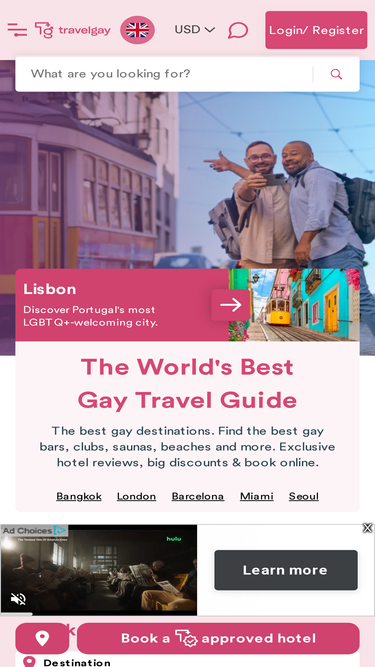 Travel guide for lesbians and bisexual women, offering information for destinations around the world with listings of bars, restaurants, hotels, events and more.