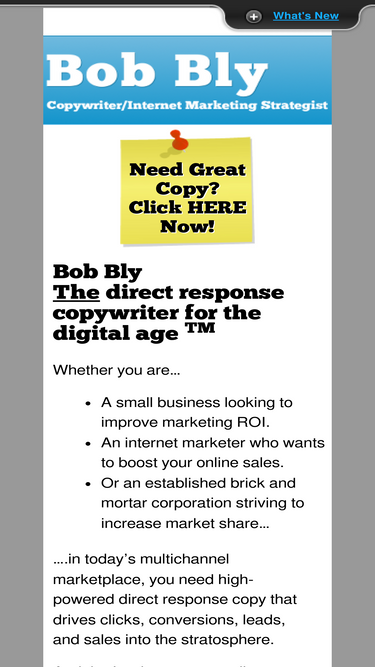 bob bly is a freelance direct response copywriter with over 4 decades of experience in writing copy that has increased response rates for his clients from 10% to 900%. mcgraw-hill calls bob bly america's top copywriter.