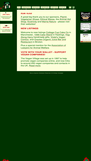 vegan village lists vegan run organisations and companies in the uk, check out the top vegan websites, recipe book and noticeboard.