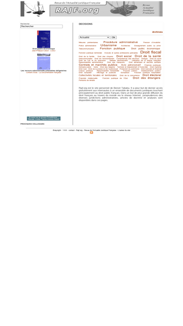 rajf.org est le site personnel de benoit tabaka. il a pour but de donner accès gratuitement aux internautes à un ensemble de documents juridiques touchant principalement au droit public français. dans un but de plus grande diffusion du droit français au travers du monde via le réseau internet, jurisprudences des diverses juridictions administratives, articles de doctrine et analyses sont disponibles dans ces pages.