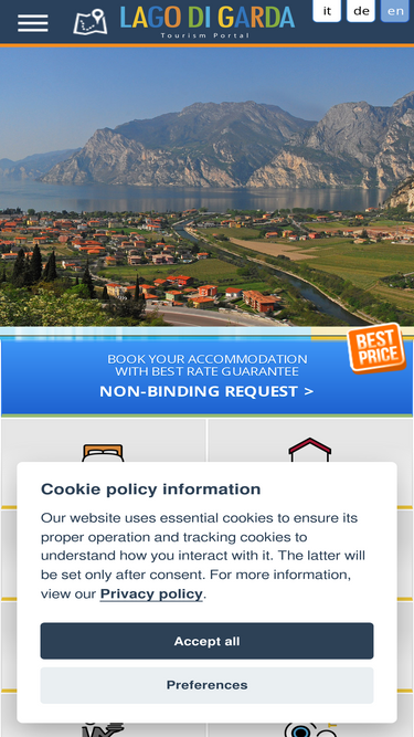 gardasee urlaub aktuell: alle informationen für ihre reise an den gardasee in italien wie hotels, ferienwohnungen, appartements, ferienhäuser, campingplätze, bed & breakfast & agriturismi, ausflugsziele, immobilien, sportanbieter, restaurants, weingüter, veranstaltungen, wettervorhersage, sportanbieter und vieles mehr.