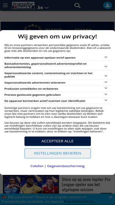 トップ10リストの他の5つの競争サイトは、 transfermarkt.be (11月 2025の訪問数は468.6K)、 voetbalzone.nl (11月 2025の訪問数は13.6M)、 walfoot.be (11月 2025の訪問数は2.4M)、 fcupdate.nl (11月 2025の訪問数は4M )、vrouwenvoetbalkrant.be (11月 2025の訪問数は4.7K)です。