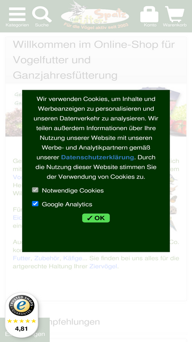 vogelfutter und vogelartgerechtes zubehör. wie z.b. körnermischungen, weichfutter, kolbenhirse, gefrorene insekten, käfige und volieren von montana cages, nistkästen, vogelhäuser, vogelkäfige