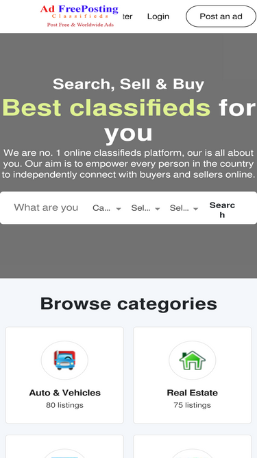 ad free posting classifieds - classified ads for jobs, business, services, buy-sell products, real estate, electronics. platform for free ad posting.