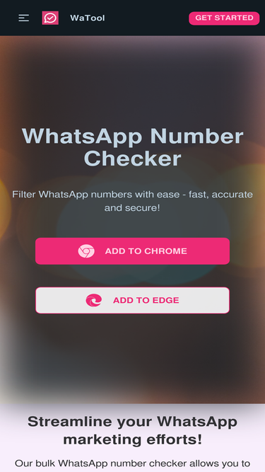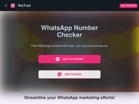 86%Our bulk WhatsApp number checker allows you to easily verify the validity of large lists of WhatsApp numbers, ensuring that your messaging campaigns reach the right audience. Fast, accurate, and secure, with all progress saved to your history for easy review. Try it now!