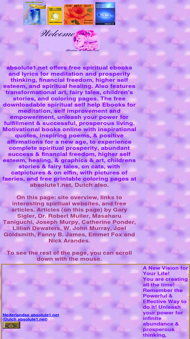 offers free spiritual ebooks and lyrics for meditation and prosperity thinking, financial freedom, higher self esteem, and spiritual healing. also features transformational art, fairy tales, children's stories, and coloring pages, downloadable free motivational e-books, & self improvement books online for meditation, abundance & prosperity thinking, with positive affirmations, inspirational quotes, & inspiring poems for a new age, to experience complete success & financial freedom, confidence & higher self esteem, spiritual healing, graphics & art, fairy tales, childrens stories, & coloring pages for children.